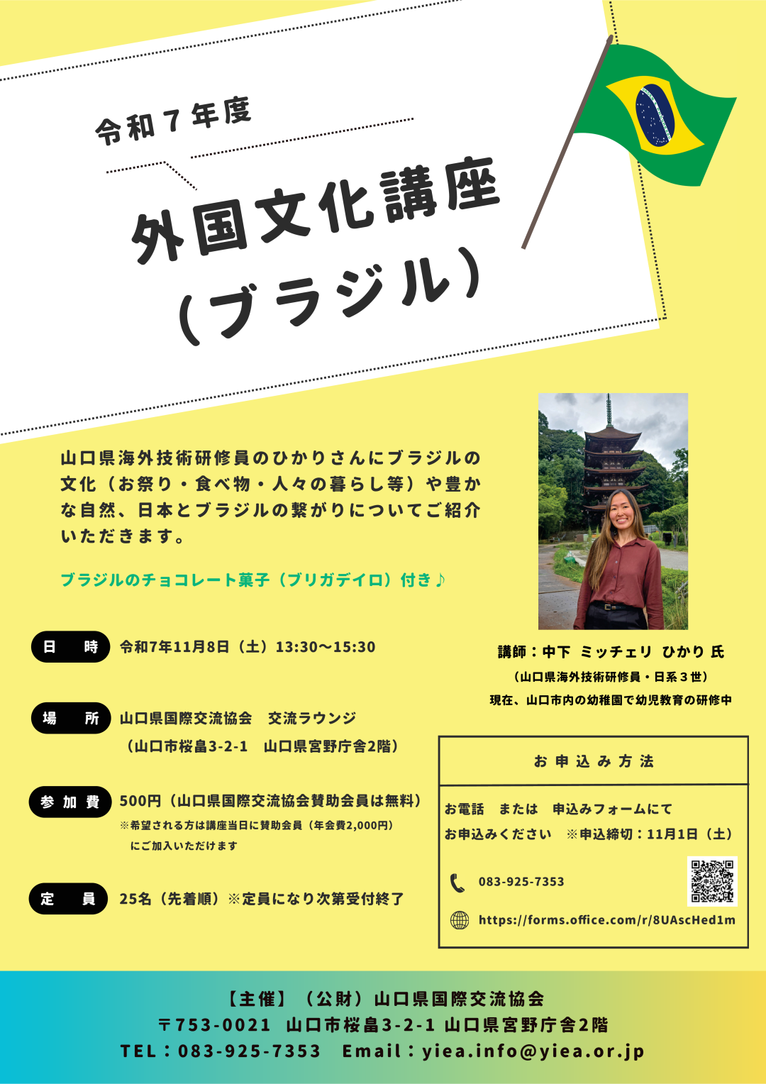令和7年度外国文化講座(ブラジル)【11/8】参加者募集