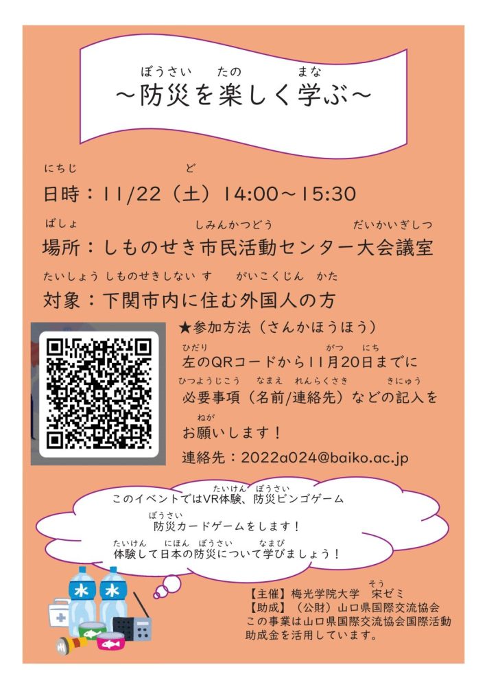 防災(ぼうさい)を楽(たの)しく学(まな)ぶワークショップ (梅光学院大学)