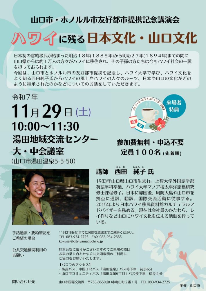 山口市・ホノルル市友好都市提携記念講演会『ハワイに残る日本文化・山口文化』(山口市)