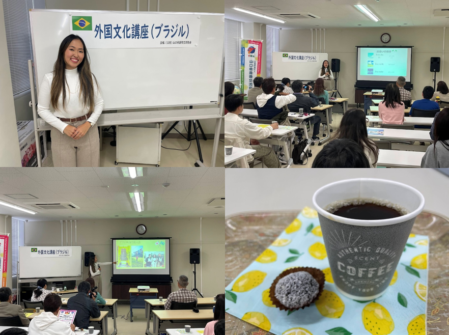 11月8日(土)に山口県国際交流協会で「外国文化講座(ブラジル)」を開催し、24名の方にご参加をいただきました。講師は、山口県海外技術研修員として山口市内の幼稚園で幼児教育の研修をされている中下ミッチェリひかりさんです。
